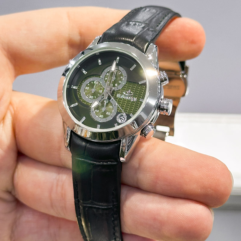 خرید قسطی | ساعت مچی زنانه الگانس طرح سه موتوره بند چرم صفحه سبز L2911/29