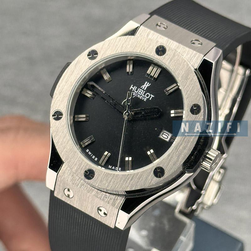 خرید اقساط ساعت هابلوت زنانه صفحه مشکی مدل بیگ بنگ 582888B با بدنه استیل 316، بند رابر ضد حساسیت، صفحه نشکن و ضد خش و ضد آب. لوکس، دقیق و ماندگار. خرید با ضمانت اصالت و قیمت مناسب. فقط با 4 قسط میتونید پرداخت کنید .