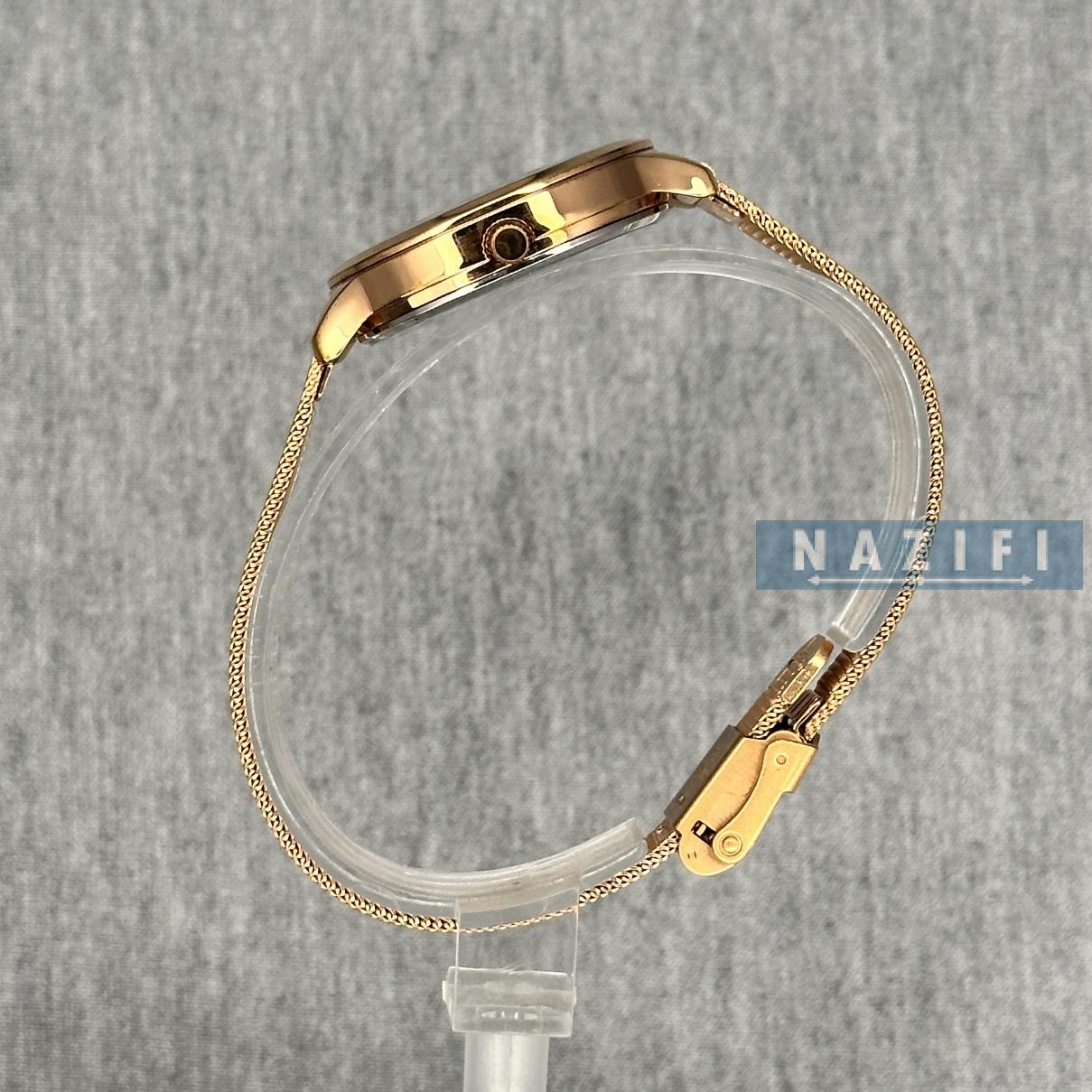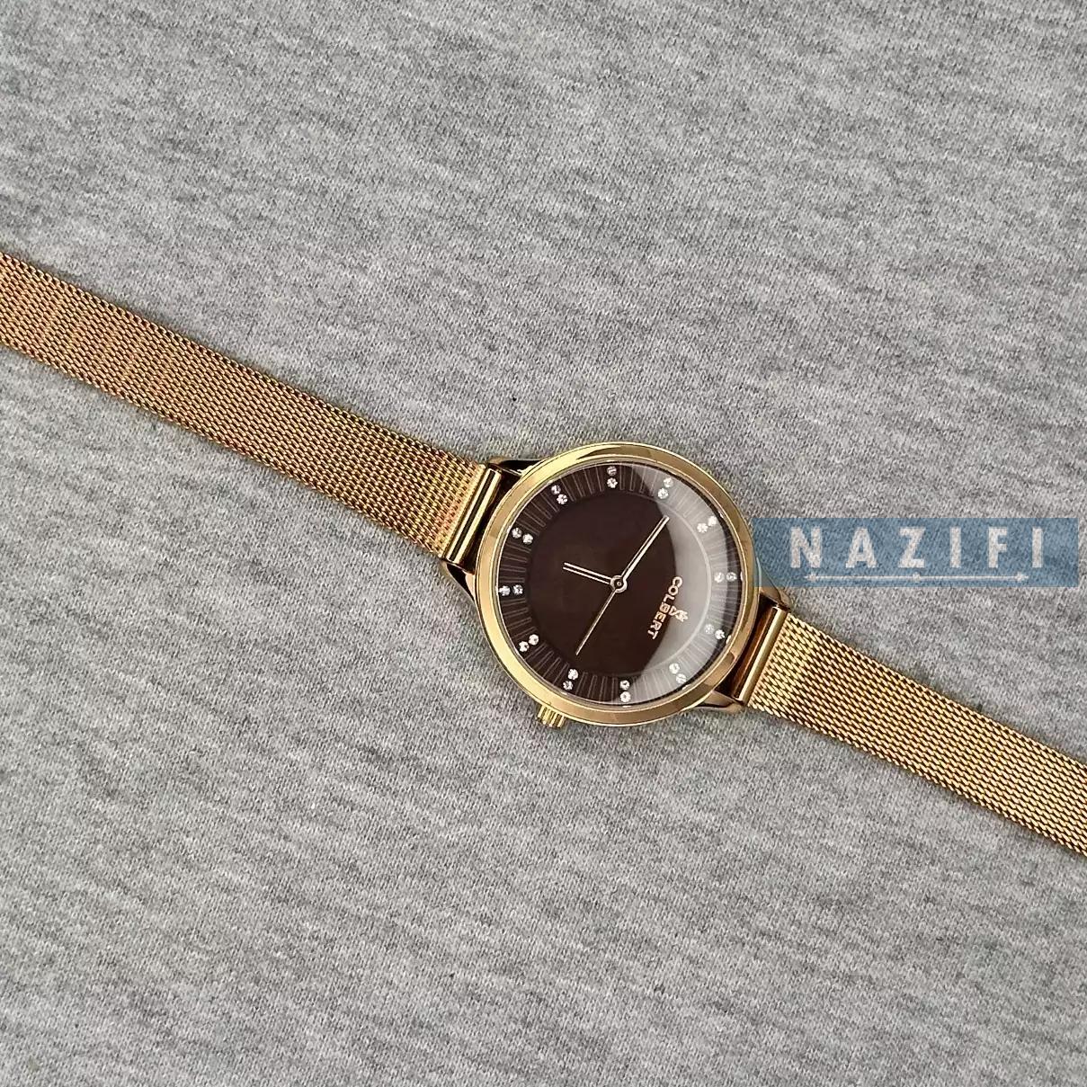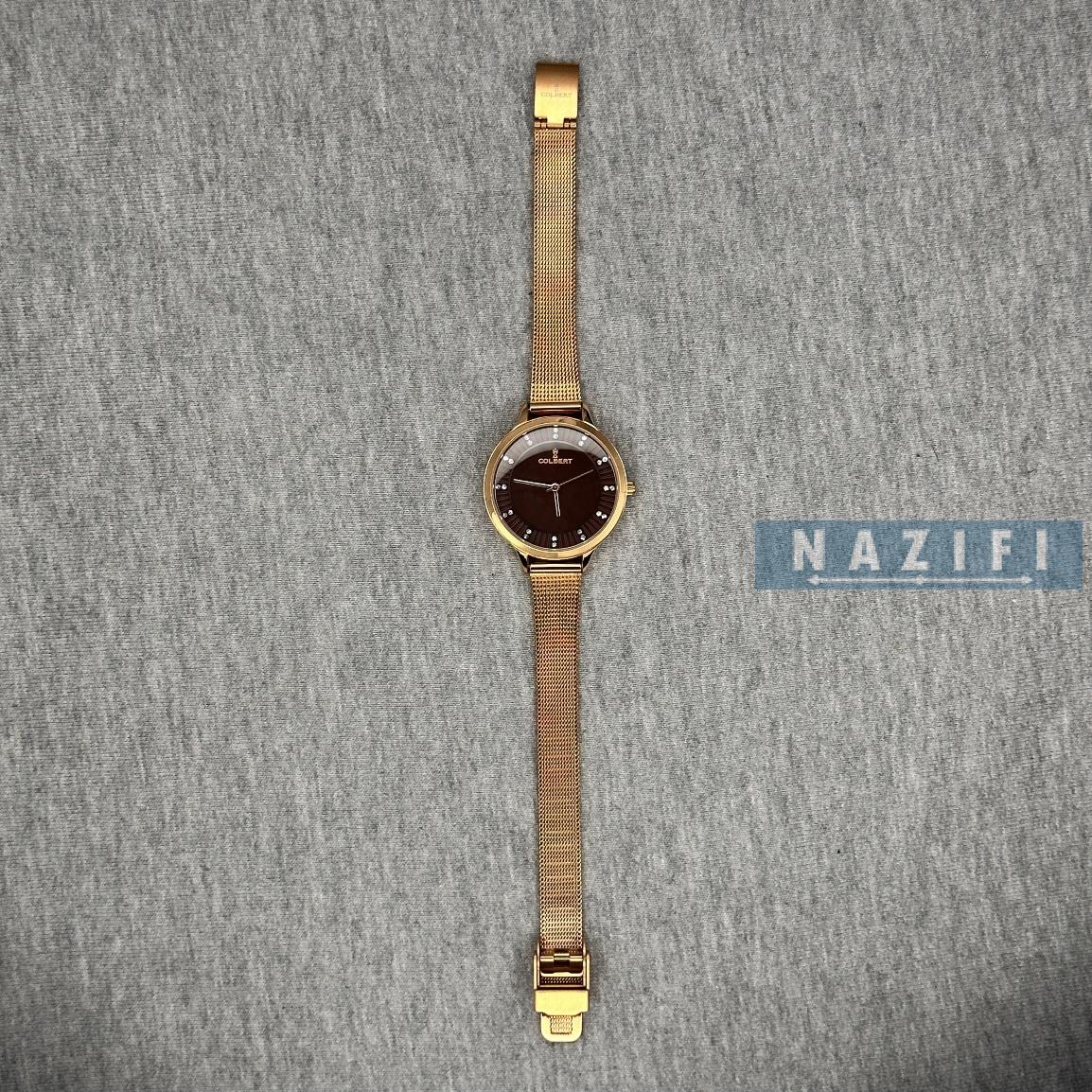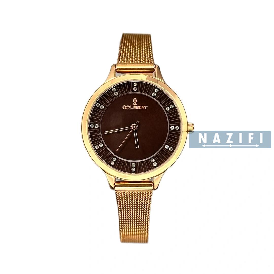 ساعت مچی زنانه کلبرت اورجینال استیل ریزبافت بند حصیری ظریف تمام رزگلد با صفحه قهوه ای مدل Colbert 0189L