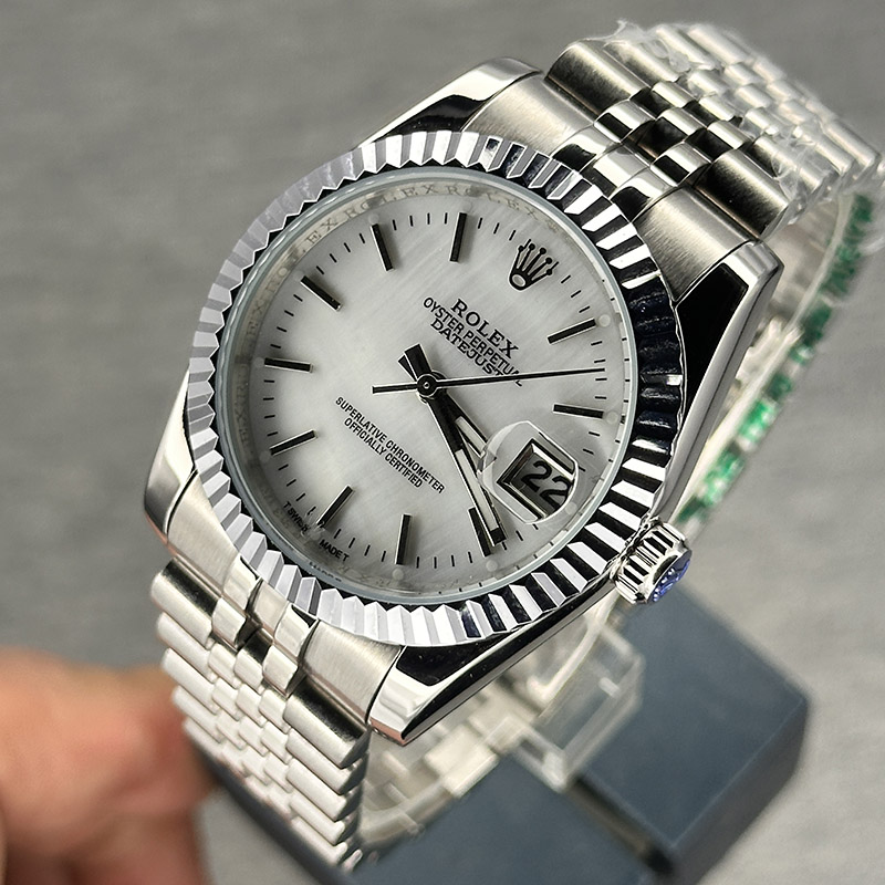 خرید قسطی | ساعت رولکس مردانه نقره ای دیت جاست اندکس خطی سایز 3 DatejustGS4416b