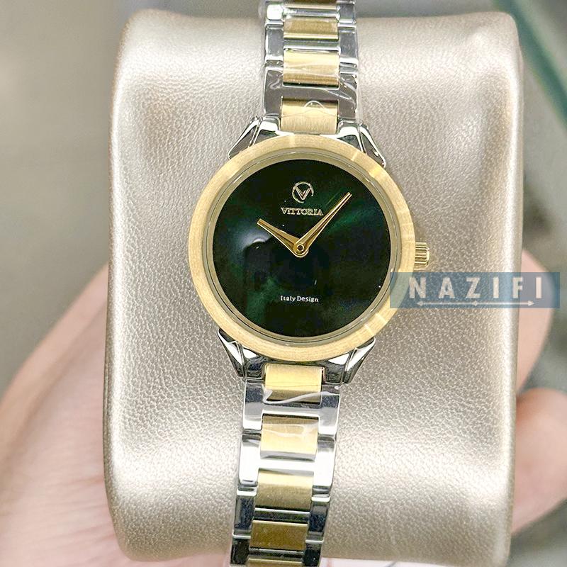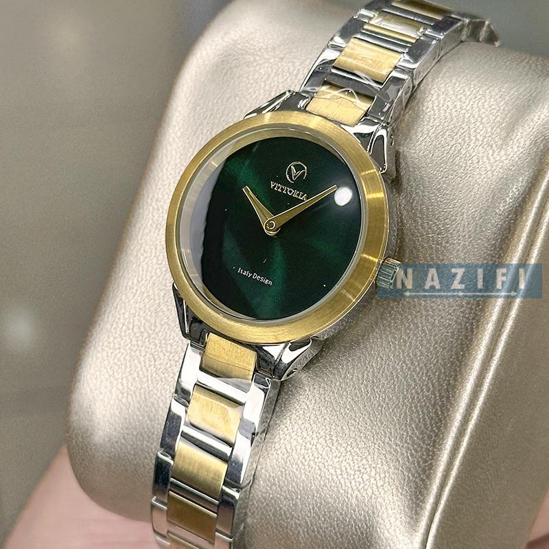 ساعت نظیفی ساعت زنانه خرید قسطی | ساعت زنانه ویتوریا اورجینال طلایی صفحه گرد سبز VT 3391/2