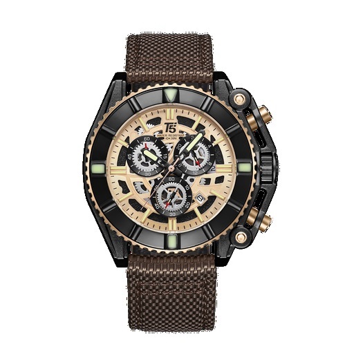 ساعت مچی اسپرت مردانه برند تی فایو T5 . سه موتوره ی کرنوگراف ، محصول کشور هنگ کنگ . بدنه ی این ساعت از جنس استیل ضد حساسیت و ضد زنگ ساخته شده . بند های این ساعت از جنس برزنت بسیار مقاوم و محکم ساخته شده که به لطف پین های متحرک دستی ، به شما امکان تعویض راحت بند ها رو میده . به عبارتی دیگه شما میتونید در کنار بند های فابریک ، برای هر رنگ لباس و استایلتون بند هم رنگش رو تهیه کنید و به این صورت برای هر ست از هر رنگ لباس و استایلتون ، بدون مراجعه به تعمیرگاه و بدون نیاز به ابزار به راحتی بند رو تعویض کنید و ساعتی با رنگ بند دلخواهتون داشته باشید . برای خرید بند های اضافه به واتساپ پیام بفرستید .