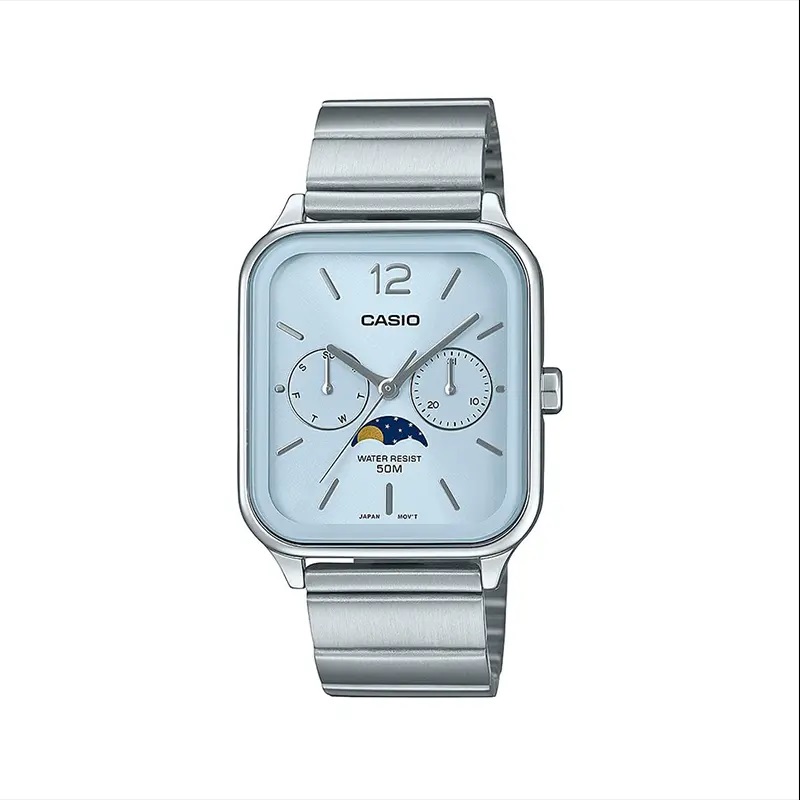 CASIO-MTP-M305D-2AVDF برای کسانی ساخته شده که میخواهند یک ساعت شیک، مقاوم و متفاوت داشته باشند. ویژگی Moon Phase آن جلوهای خاص به ساعت میدهد و بدنه استیل آن باعث میشود سالها بدون افت کیفیت همراه شما باشد.