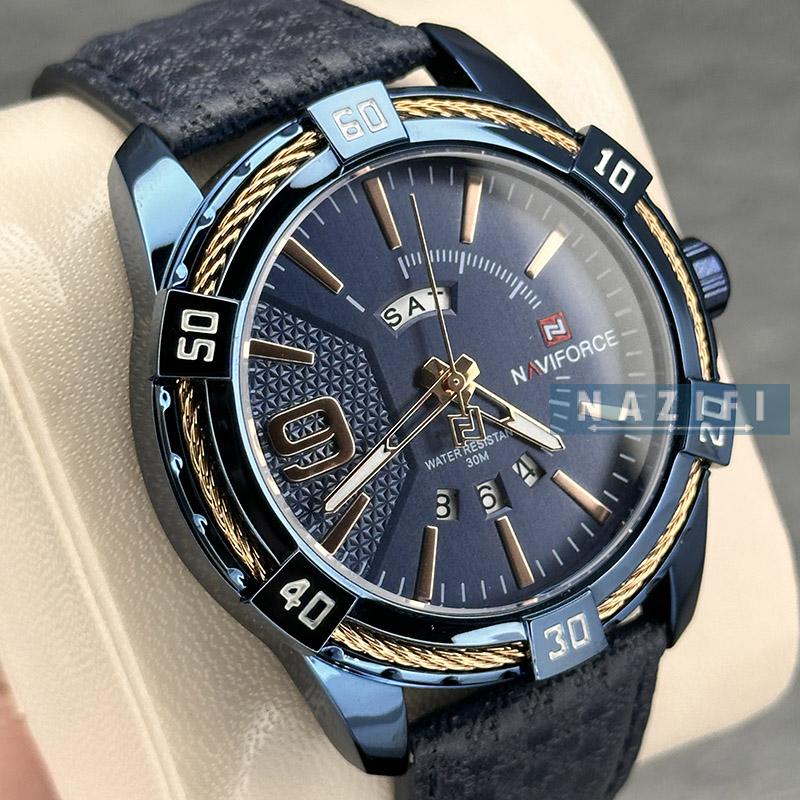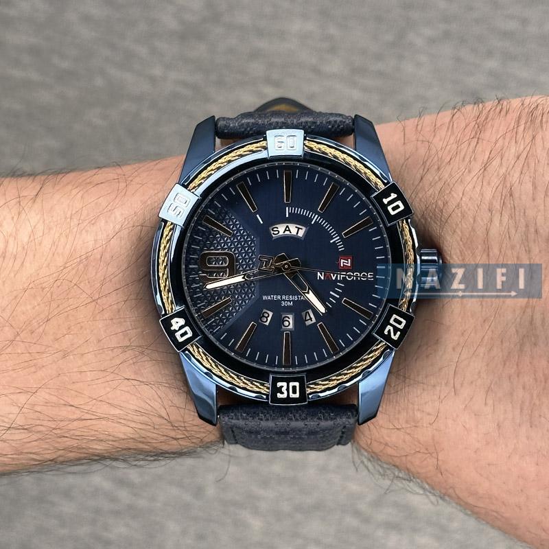 ساعت نظیفی ساعت مردانه خرید قسطی| ساعت مردانه نیوی فورس دو تاریخه چرم سرمه ای اسپرت NF-9117