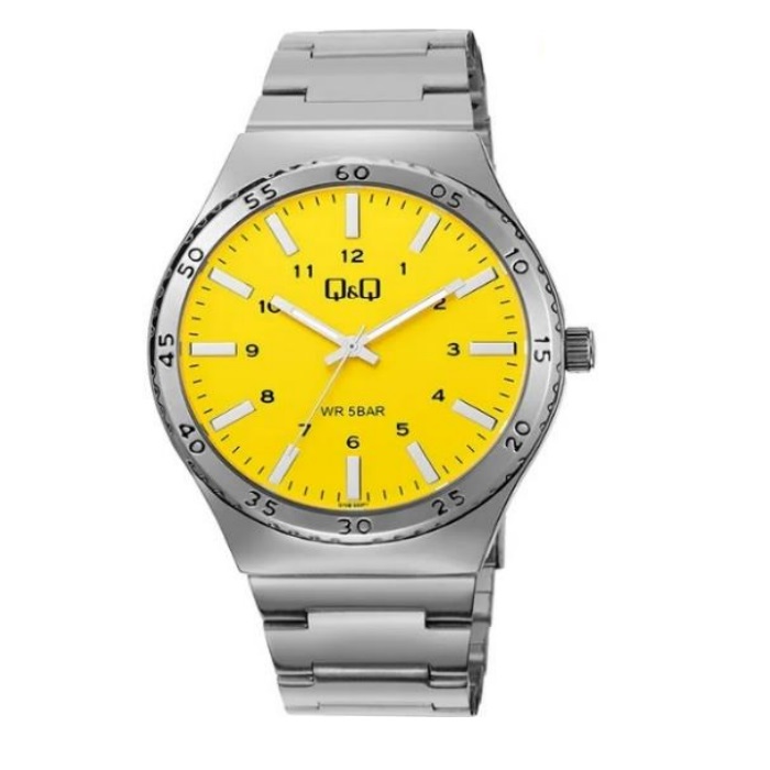 ساعت مچی عقربهای مردانه کیو اند کیو مدلQ70B-003PY ساعتی از جنس استیل با نمایش عقربه های شب نما، دارای استاندارد ضد آب 50 متر ضد آب و ضد حساسیت برند کیو اند کیو با بسته بندی و جعبه اصلی شرکتی . طراحی این ساعت در کلاس اسپرت هست و برای استایل های روزانه و اسپرت کاملن مناسبه . دارای استاندارد ضد آب50 متر هست که برای شنای سطحی و کم عمق ، و استفاده هنگام استحمام (دوش گرفتن) و فعالیت های ورزشی مناسبه .