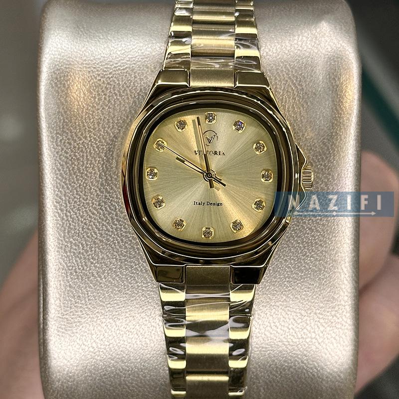 ساعت نظیفی ساعت زنانه خرید قسطی | ساعت زنانه ویتوریا اورجینال1 تمام طلایی قاب مربع VT 3412/3
