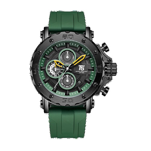 ساعت مچی اسپرت مردانه برند تی فایو T5 . سه موتوره ی کرنوگراف ، محصول کشور هنگ کنگ . بدنه ی این ساعت از جنس استیل ضد حساسیت و ضد زنگ ساخته شده . بند های این ساعت از جنس رابر بسیار لطیف و مقاوم و محکم ساخته شده که به لطف پین های متحرک دستی ، به شما امکان تعویض راحت بند ها رو میده . به عبارتی دیگه شما میتونید در کنار بند های فابریک ، برای هر رنگ لباس و استایلتون بند هم رنگش رو تهیه کنید و به این صورت برای هر ست از هر رنگ لباس و استایلتون ، بدون مراجعه به تعمیرگاه و بدون نیاز به ابزار به راحتی بند رو تعویض کنید و ساعتی با رنگ بند دلخواهتون داشته باشید . برای خرید بند های اضافه به واتساپ پیام بفرستید .