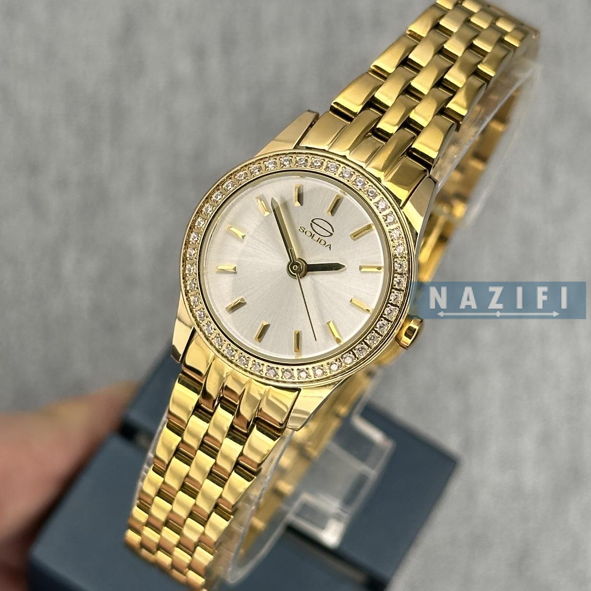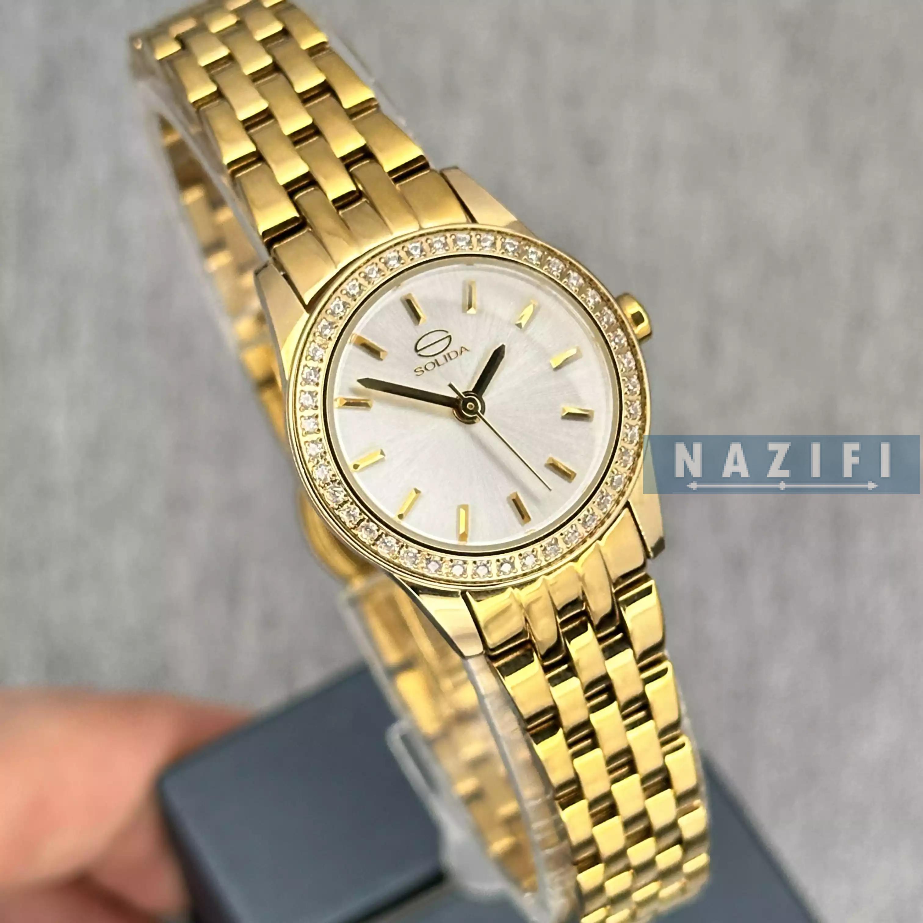 ساعت مچی زنانه صفحه کوچک سولیدا اورجینال 54112 صفحه ی بسیار ظریف و نگین های جایگذاری شده با دستگاه