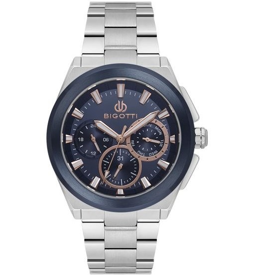ساعت مچی مردانه بیگوتی تمام استیل صفحه آبی ، 3 موتوره فول تایم ،اعداد و عقربه شب نما ، شیشه معدنی و ضد آب تا فشار 50 متر مدل Bigotti-BG.1.10627-4 ساعت بیگوتی، ترکیبی از طراحی ایتالیایی و کیفیت جهانی. همین حالا ساعت Bigotti اصل را با پرداخت اقساطی در ۴ قسط از طریق اسنپپی خریداری کنید — بدون چک و بدون ضامن!