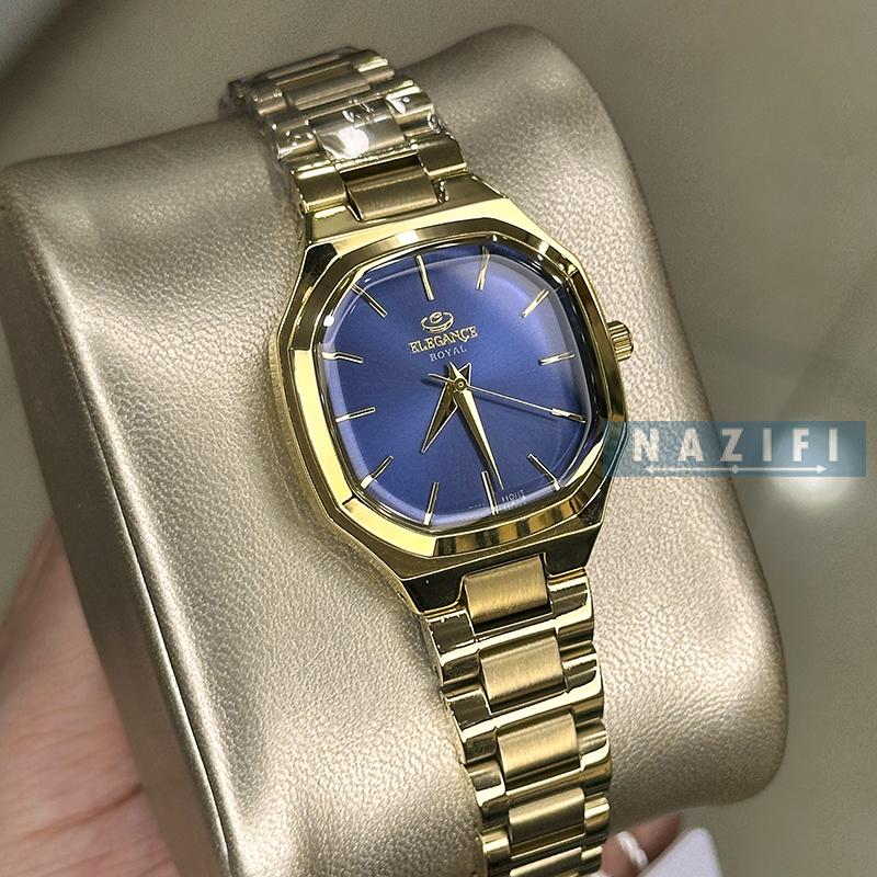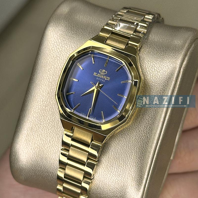 ساعت نظیفی ساعت زنانه خرید قسطی | ساعت زنانه الگانس استیل طلایی صفحه آبی ER 2208/13