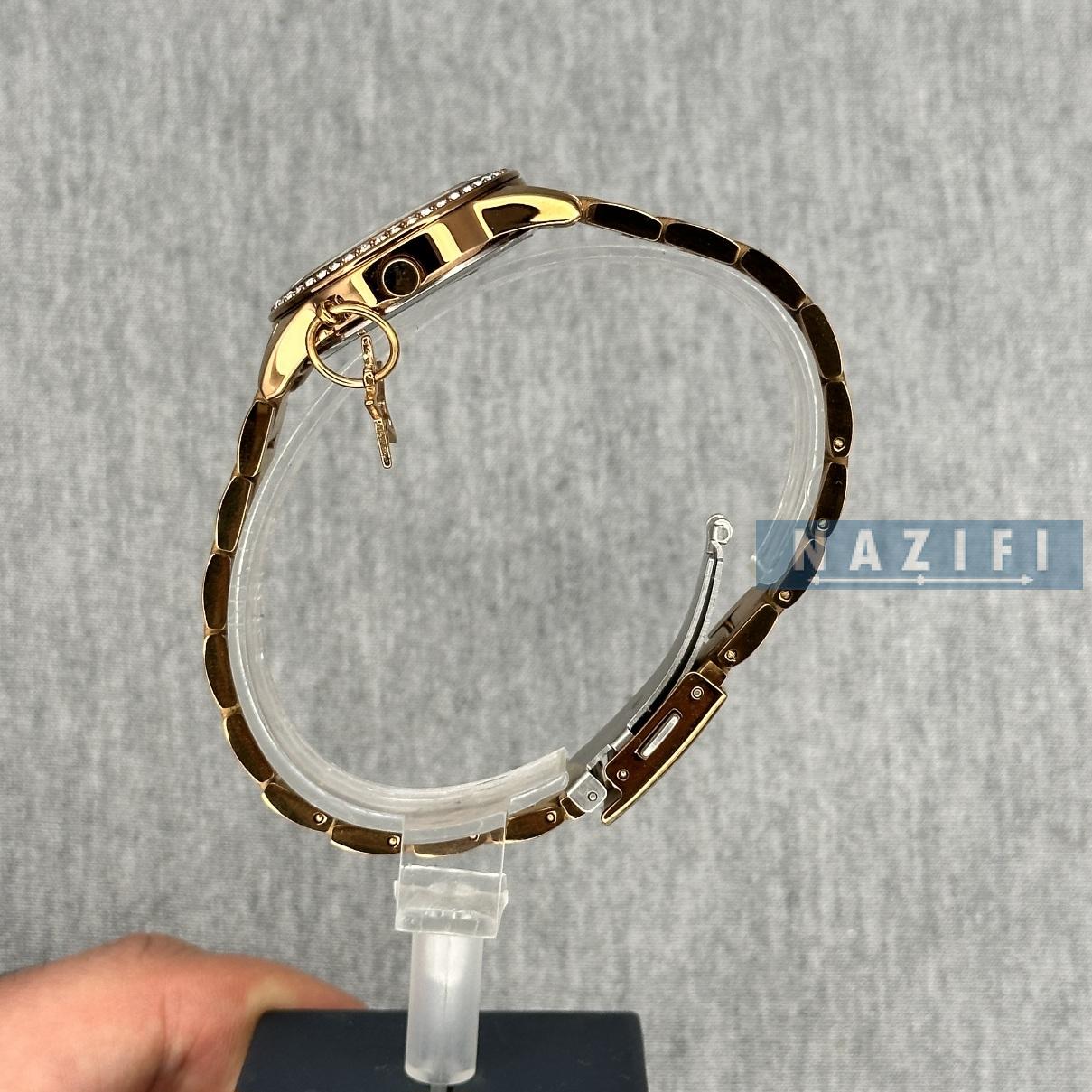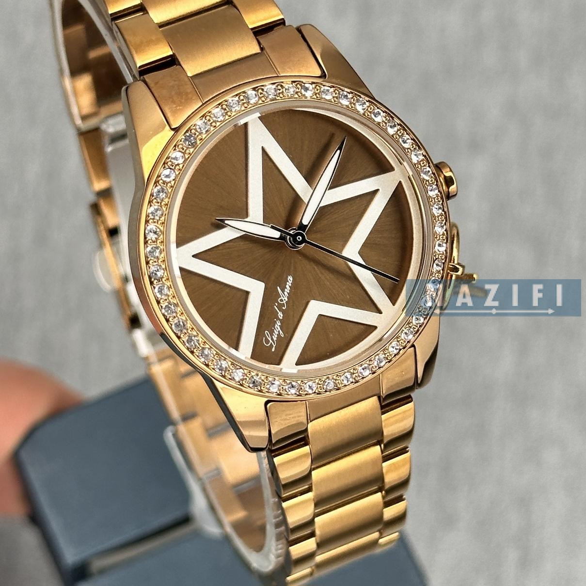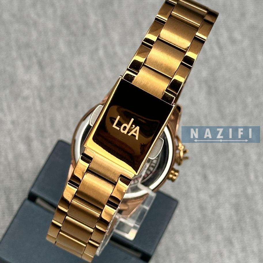 ساعت LDA زنانه: طراحی ظریف و مجلسی، با رنگبندی طلایی، نقرهای و رزگلد.