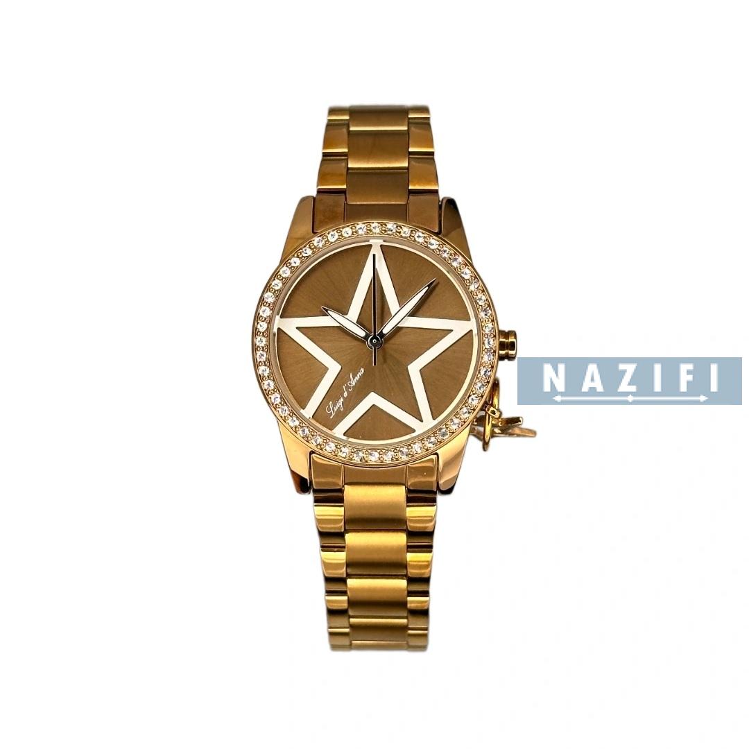 ساعت زنانه اورجینال ال دی ای کلاسیک رزگلد LDA-KL2290 . تمام رزگلد (شوکولاتی) دارای آویز ستاره ای متصل به قاب ساعت ، طرح صفحه ستاره ای و نگین های جایگذاری شده روی قاب با دستگاه. ارزان ترین قیمت بازار در فروشگاه ساعت نظیفی