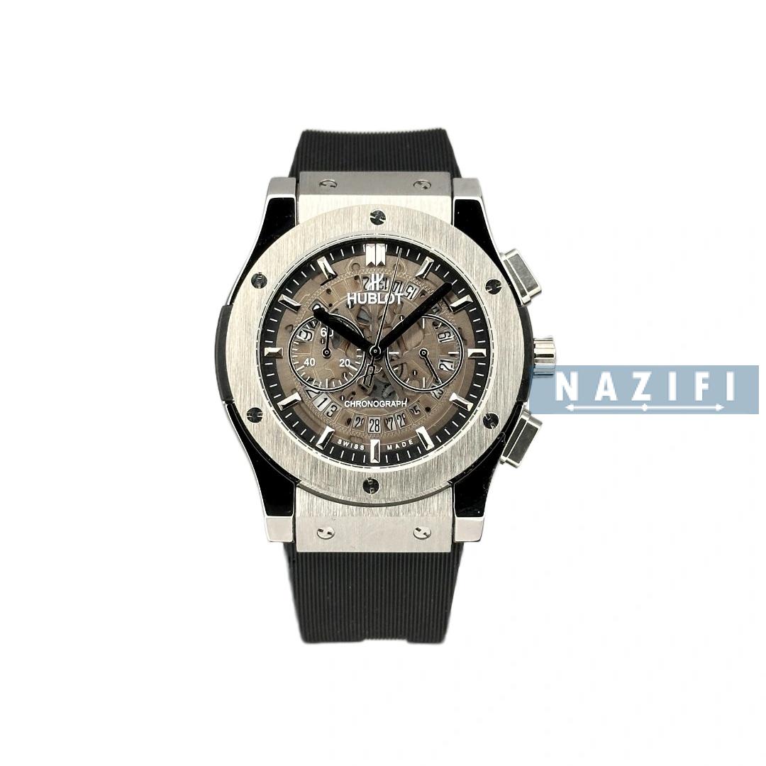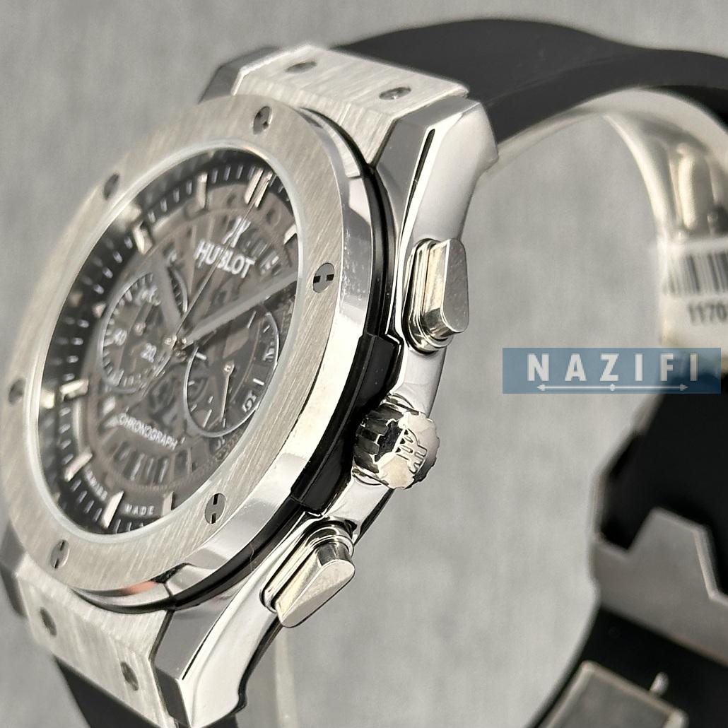ساعت نظیفی ساعت مردانه ساعت مچی مردانه هابلوت کرنوگراف مدل بیگ بنگ اسکلتون 582888SS