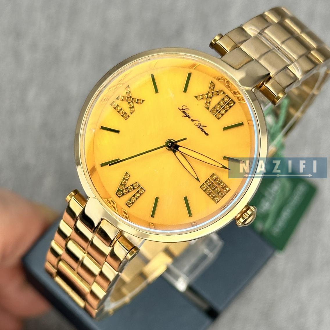 ساعت LDA زنانه: طراحی ظریف و مجلسی، با رنگبندی طلایی، نقرهای و رزگلد.