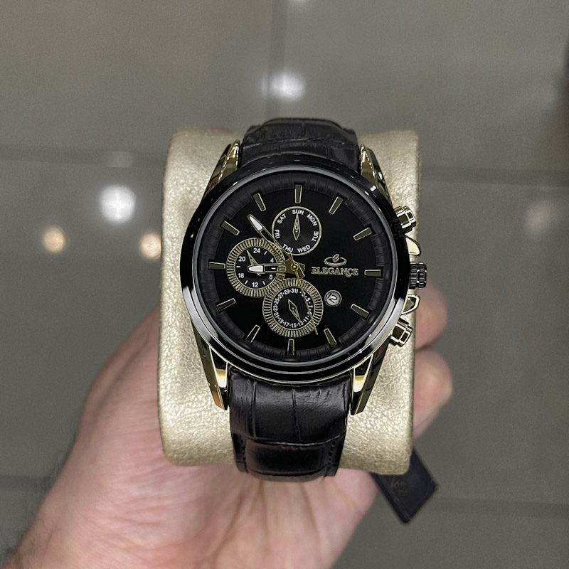 ساعت نظیفی ساعت مردانه خرید قسطی | ساعت مچی مردانه الگانس طرح سه موتوره بند چرم G2911/33