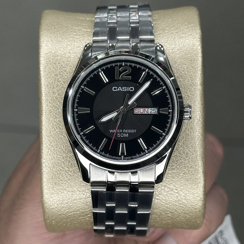 ساعت مچی مردانه کاسیو دوتاریخه CASIO-MTP-1335D-1A مناسب برای : آقایان مقاومت در برابر آب تا : 50 متر منبع انرژی : باتری معمولی فرم قاب : گرد رنگ بدنه : نقره ای جنس بند : استیل نوع قفل : ضامن دار جنس قاب : آبکاری یونی گارانتی : 12 ماه