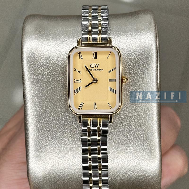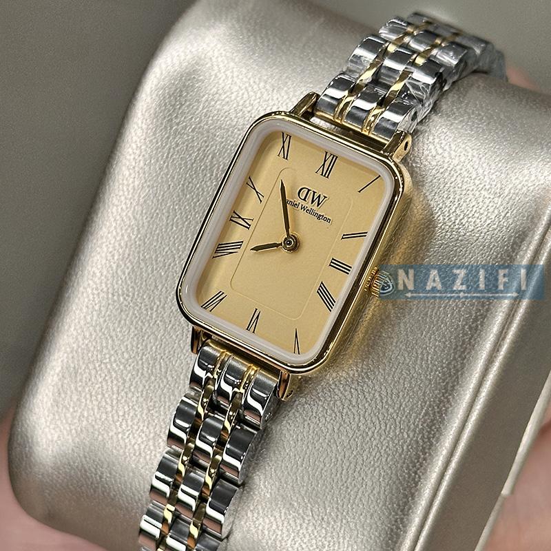 ساعت نظیفی ساعت زنانه خرید قسطی | ساعت زنانه صفحه مستطیل دنیل ویلینگتون نقره ای طلایی شامپاینی K26MR001/17