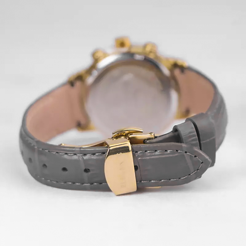 خرید قسطی | ساعت مچی زنانه الگانس طرح سه موتوره بند چرم طوسی قاب طلایی L 1201/6