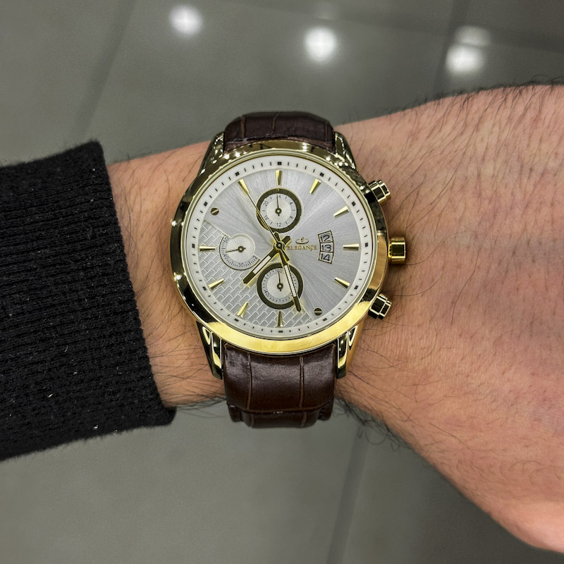 خرید قسطی | ساعت مچی مردانه الگانس طرح سه موتوره بند چرم G11191/7