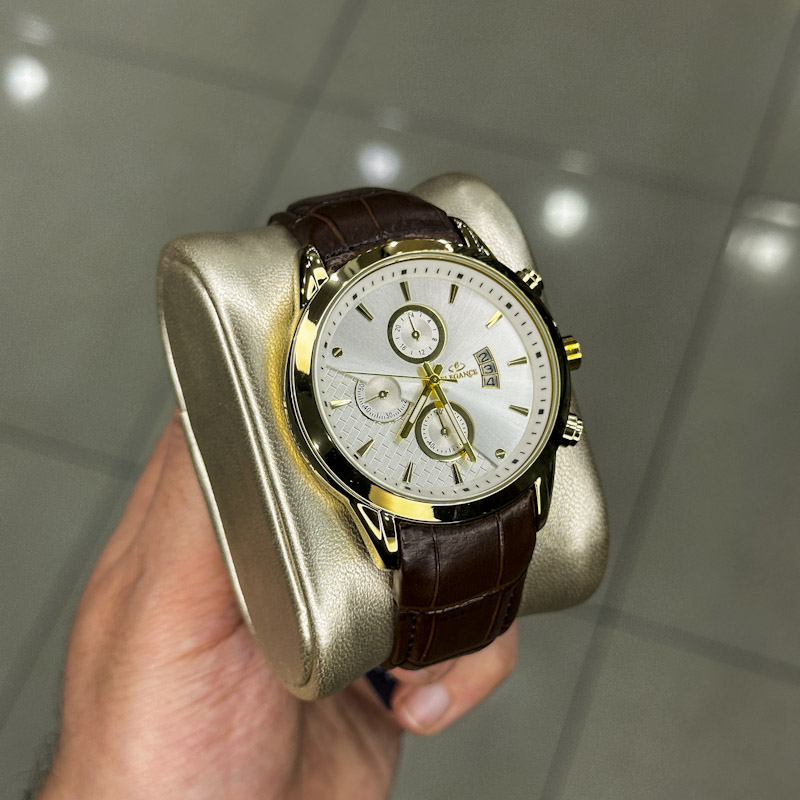 ساعت نظیفی ساعت مردانه خرید قسطی | ساعت مچی مردانه الگانس طرح سه موتوره بند چرم G11191/7