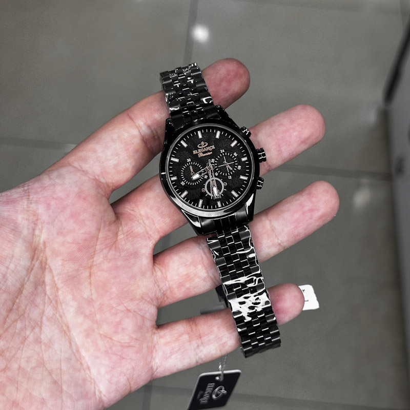 خرید قسطی | ساعت مچی زنانه الگانس طرح سه موتوره تمام مشکی l 1319/1