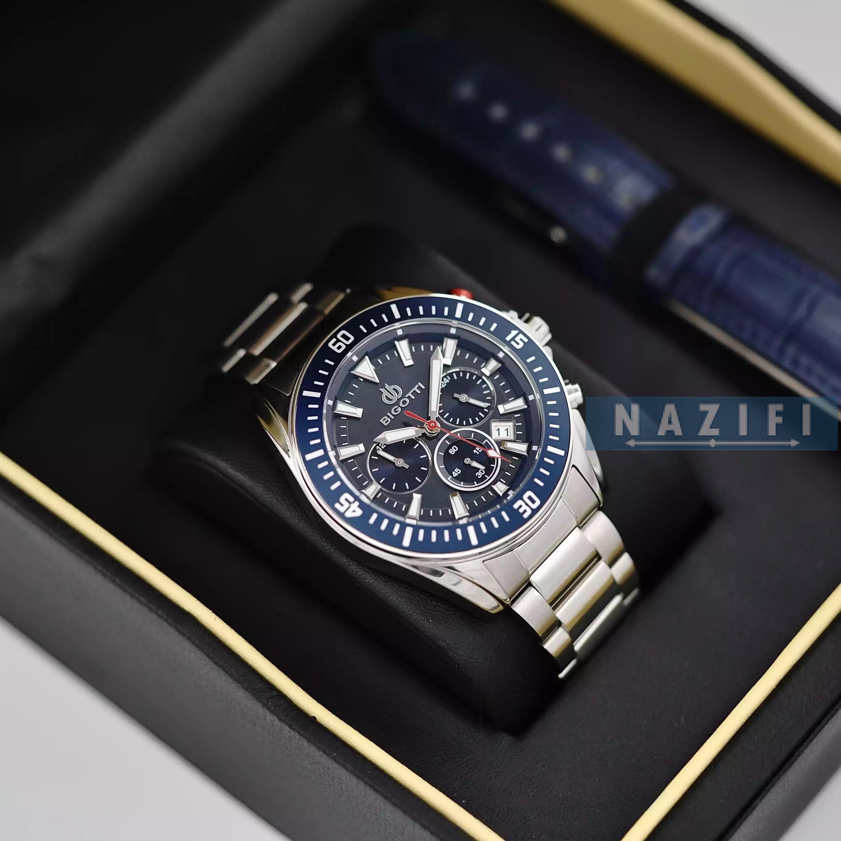 ساعت مچی مردانه بیگوتی سه موتوره کرنوگراف صفحه سرمه ای ، ،اعداد و عقربه شب نما ، شیشه معدنی و ضد آب تا فشار 50 متر مدل BG.1.10570-2E ساعت بیگوتی، ترکیبی از طراحی ایتالیایی و کیفیت جهانی. همین حالا ساعت Bigotti اصل را با پرداخت اقساطی در ۴ قسط از طریق اسنپپی خریداری کنید — بدون چک و بدون ضامن!