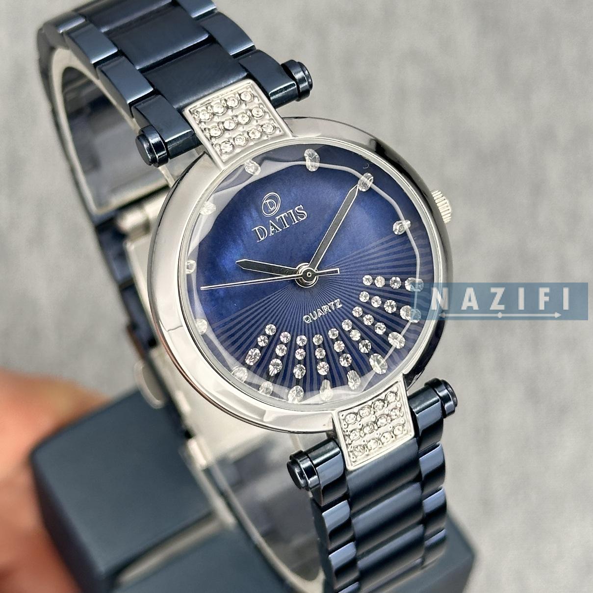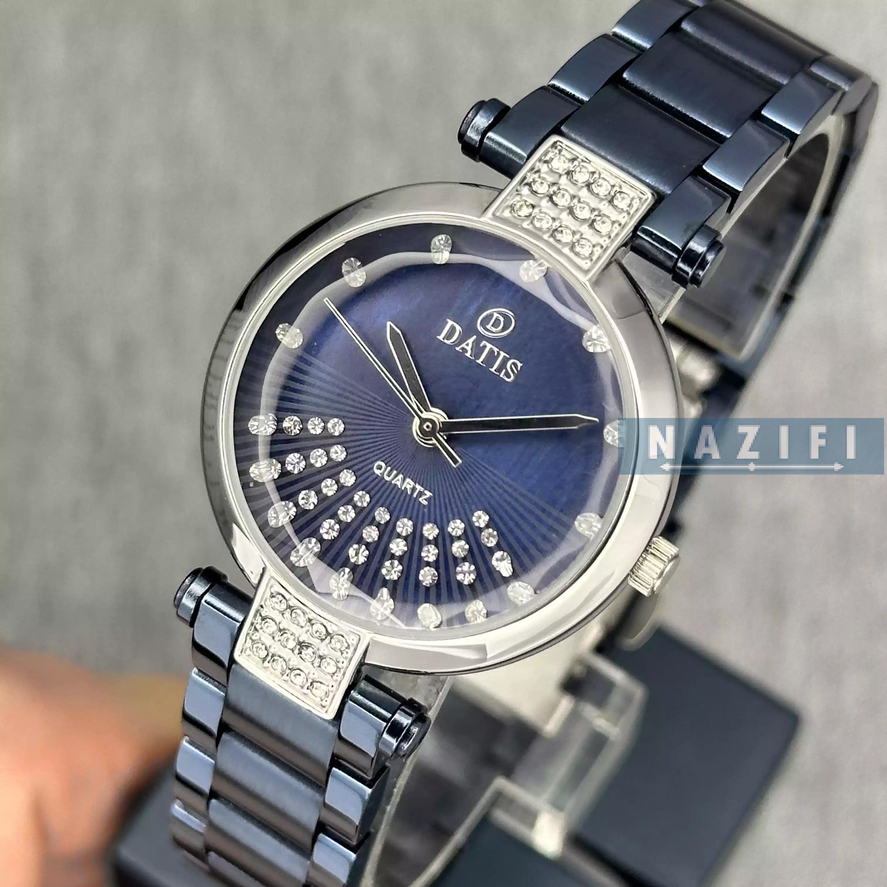 ساعت زنانه داتیس اورجینال تمام سرمه ای شیشه تراش Datis-D8465L . نگین های سی ان سی ثابت ، قفل کلیپسی ضامن دار بدنه تمام استیل ضد حساسیت و ضد زنگ و قیمت ارزان