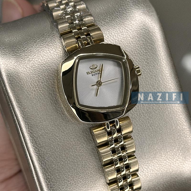 ساعت نظیفی ساعت زنانه خرید قسطی | ساعت زنانه الگانس استیل طلایی قاب مربع ER 2200/8