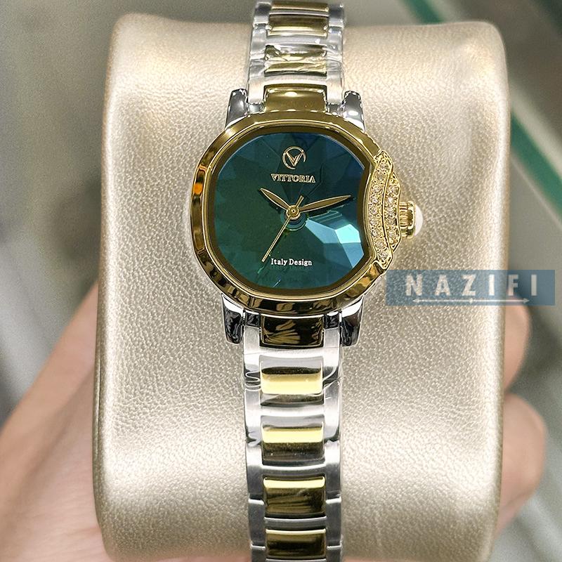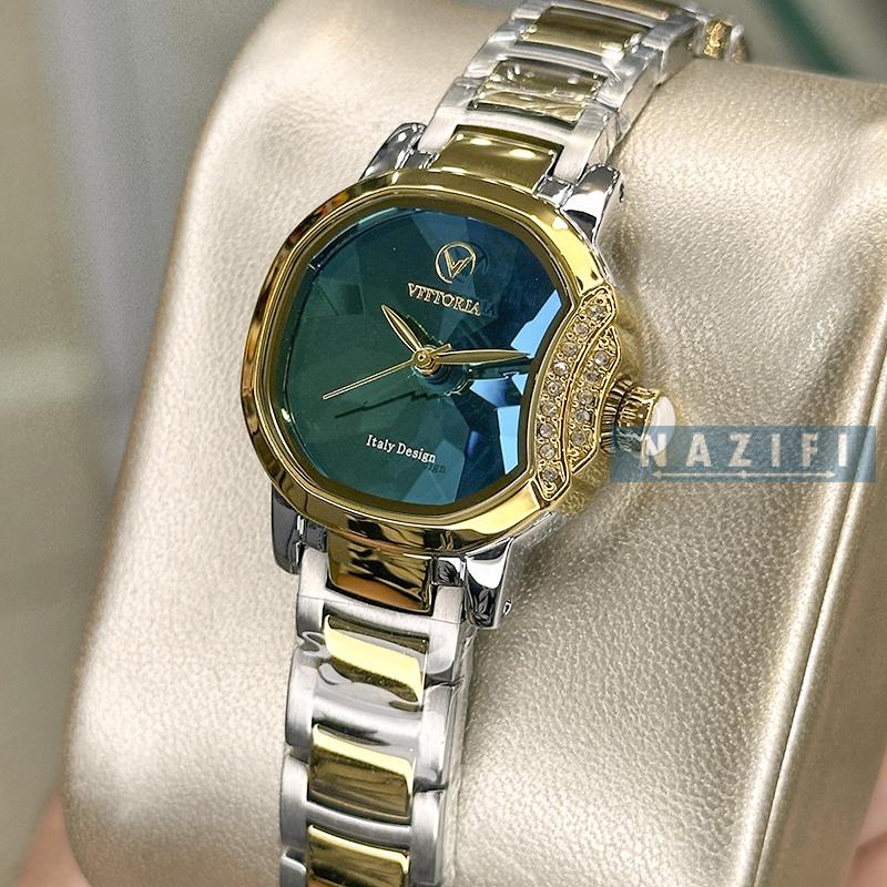 ساعت نظیفی ساعت زنانه خرید قسطی | ساعت زنانه ویتوریا اورجینال طلایی نقره ای صفحه سبز آینه ای VT 3411/2