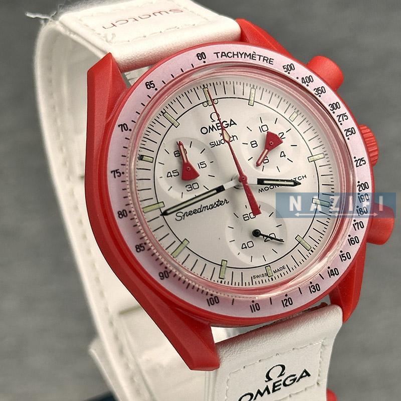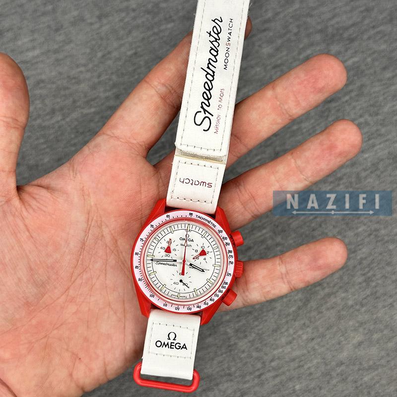 ساعت مچی اسپرت امگا مون سواچ مناسب آقایون و خانم ها 3 موتور کرنوگراف سفر به مریخ ، به همراه جعبه و پاکت و بروشور و کارت گارانتی برند امگا سواچ مناسب هدیه . امکان خرید قسطی با اسنپ پی ، دیجی پی و ترب پی .