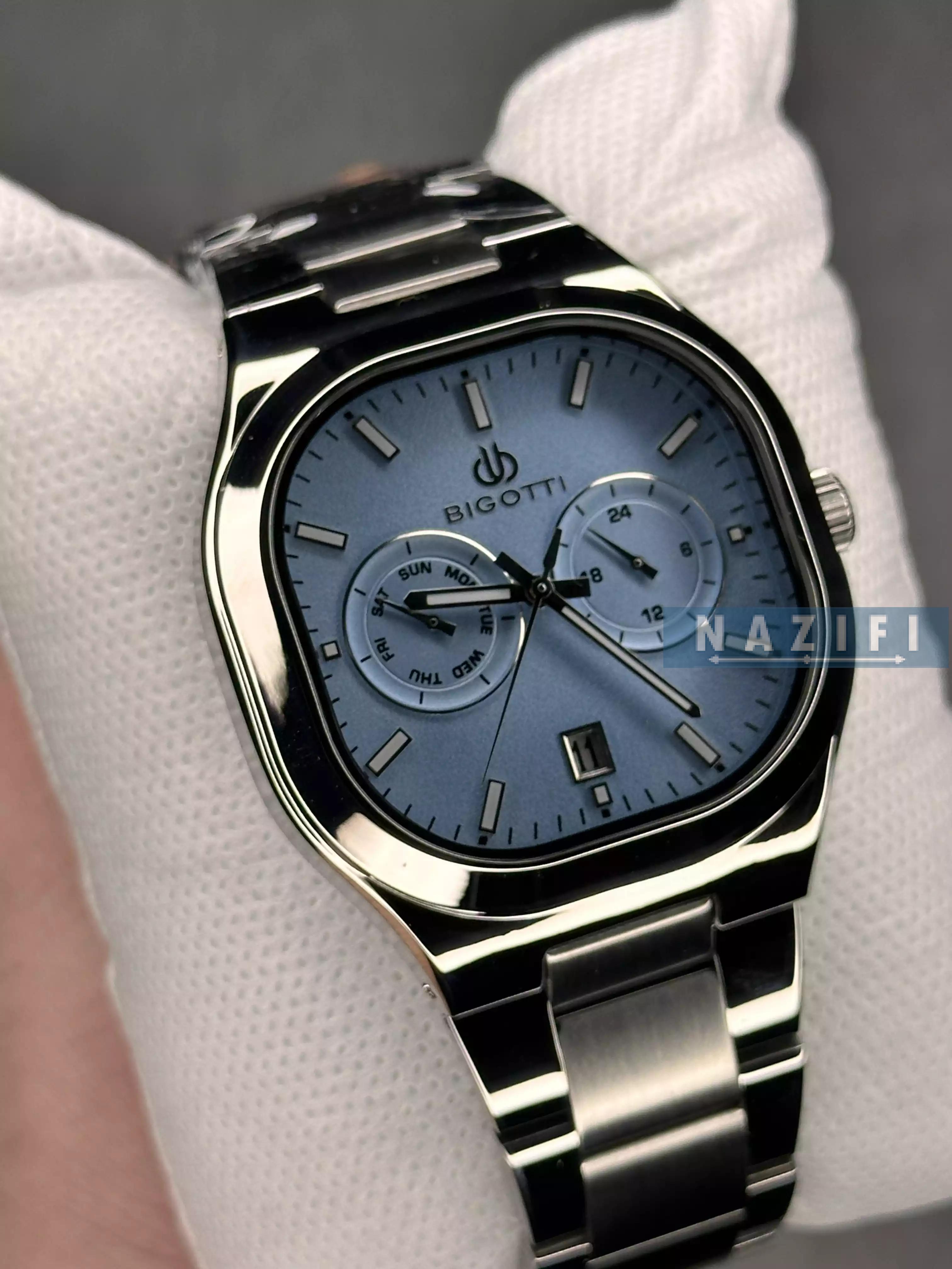 ساعت مچی مردانه بیگوتی صفحه مربع آبی، 3 موتوره فول تایم ،اعداد و عقربه شب نما ، شیشه معدنی و ضد آب تا فشار 50 متر ساعت بیگوتی، ترکیبی از طراحی ایتالیایی و کیفیت جهانی. همین حالا ساعت Bigotti اصل را با پرداخت اقساطی در ۴ قسط از طریق اسنپپی خریداری کنید — بدون چک و بدون ضامن!