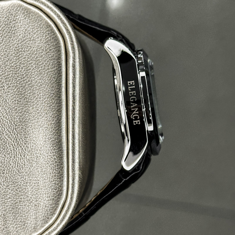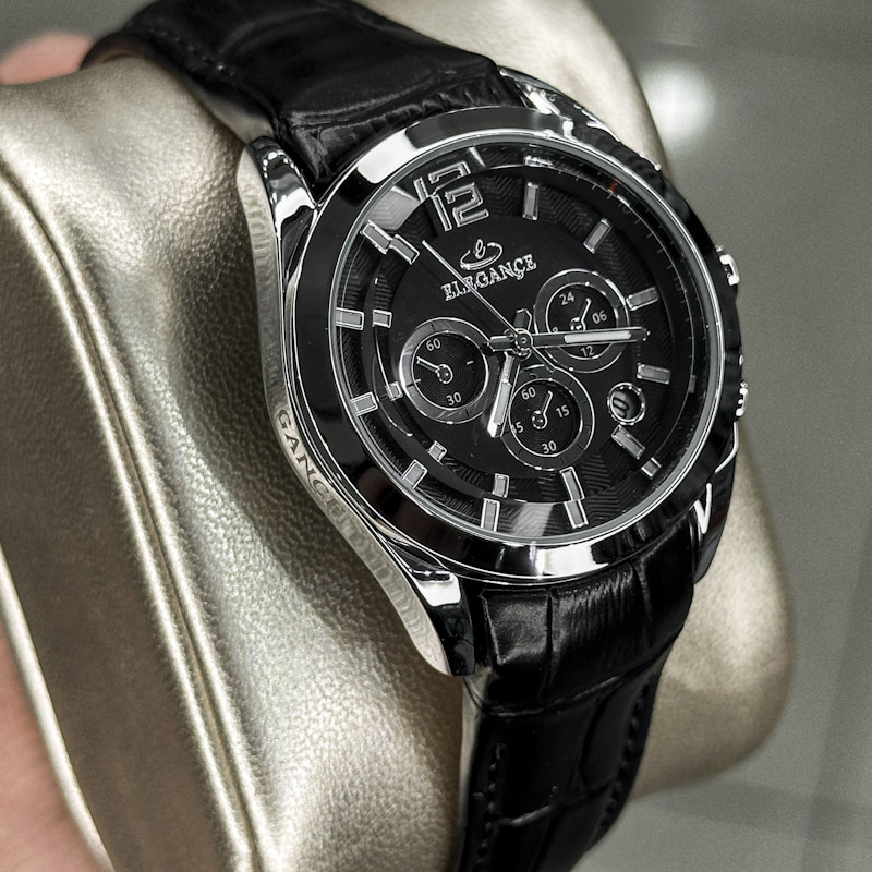 ساعت نظیفی ساعت مردانه خرید قسطی |ساعت مچی زنانه بند چرم تمام مشکی طرح 3 موتوره L 1201/6