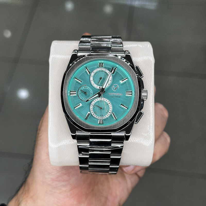 خرید قسطی | ساعت ویتوریا استیل صفحه تیفانی VT 3408/3