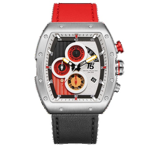 ساعت مچی اسپرت مردانه برند تی فایو T5 . سه موتوره ی کرنوگراف ، محصول کشور هنگ کنگ . بدنه ی این ساعت از جنس استیل ضد حساسیت و ضد زنگ ساخته شده فرم صفحه ی این ساعت به شکل چهار گوش هست که این روز ها در سراسر دنیا ، به عنوان یکی از المان های استایل لوکس و بروز مورد استفاده قرار میگیره . بند های این ساعت از جنس رابر لطیف بسیار مقاوم و محکم ساخته شده که به لطف پین های متحرک دستی ، به شما امکان تعویض راحت بند ها رو میده . به عبارتی دیگه شما میتونید در کنار بند های فابریک ، برای هر رنگ لباس و استایلتون بند هم رنگش رو تهیه کنید و به این صورت برای هر ست از هر رنگ لباس و استایلتون ، بدون مراجعه به تعمیرگاه و بدون نیاز به ابزار به راحتی بند رو تعویض کنید و ساعتی با رنگ بند دلخواهتون داشته باشید . برای خرید بند های اضافه به واتساپ پیام بفرستید .