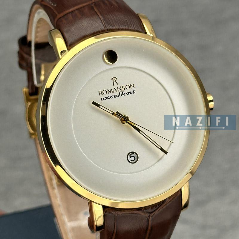 ساعت مردانه بند چرم رومانسون MA-2090G . ساعت کلاسیک با بند چرم مرغوب و قفل استیل پروانه ای ، امکان خرید اقساط با اسنپ پی ، دیجی پی و ترب پی .