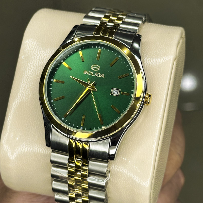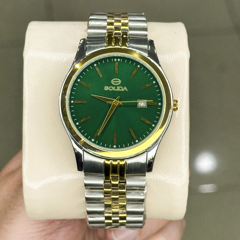 خرید قسطی | ساعت مچی مردانه سولیدا استیل نقره ای طلایی صفحه سبز 2136