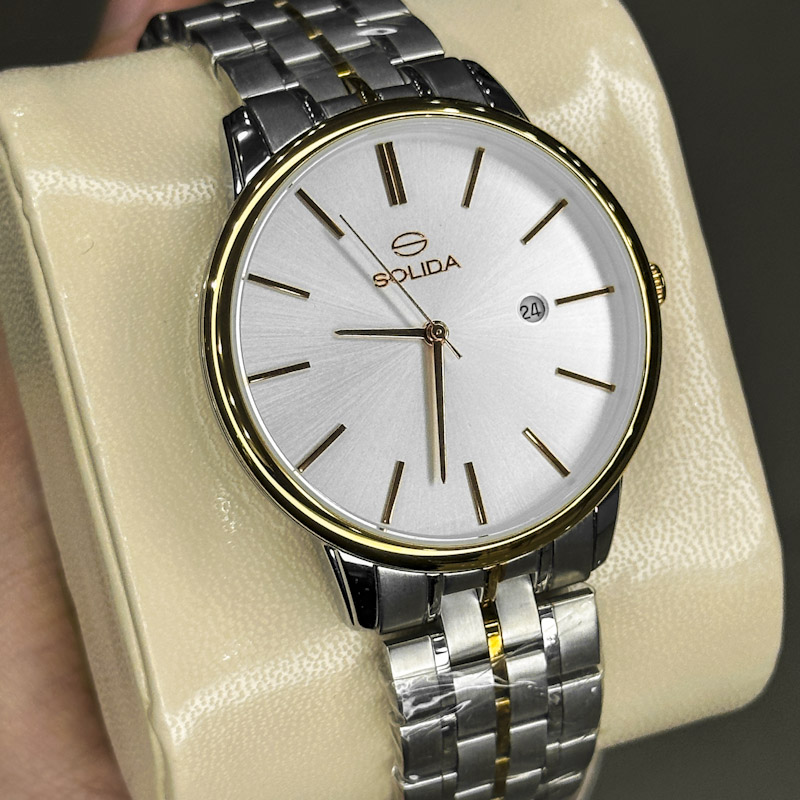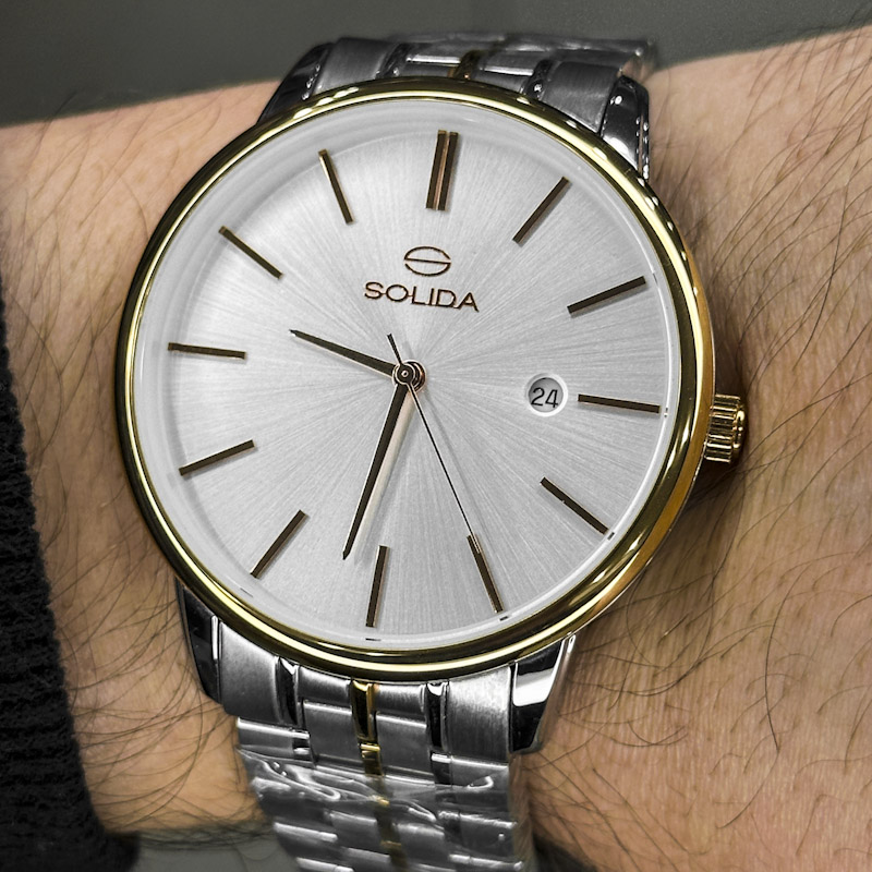 خرید قسطی | ساعت مچی سولیدا مردانه استیل نقره ای طلایی G2134/7