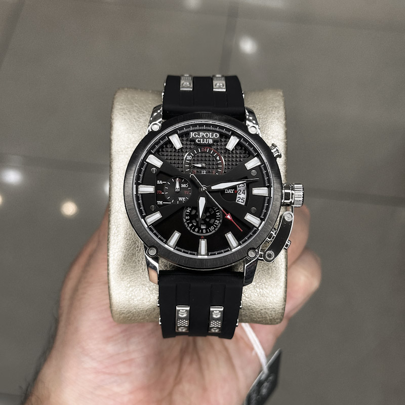 ساعت نظیفی ساعت مردانه ساعت مچی مردانه بند رابر جی جی پولو کلاب فول تایم بند رابر مشکی JPC.0224S04058/1