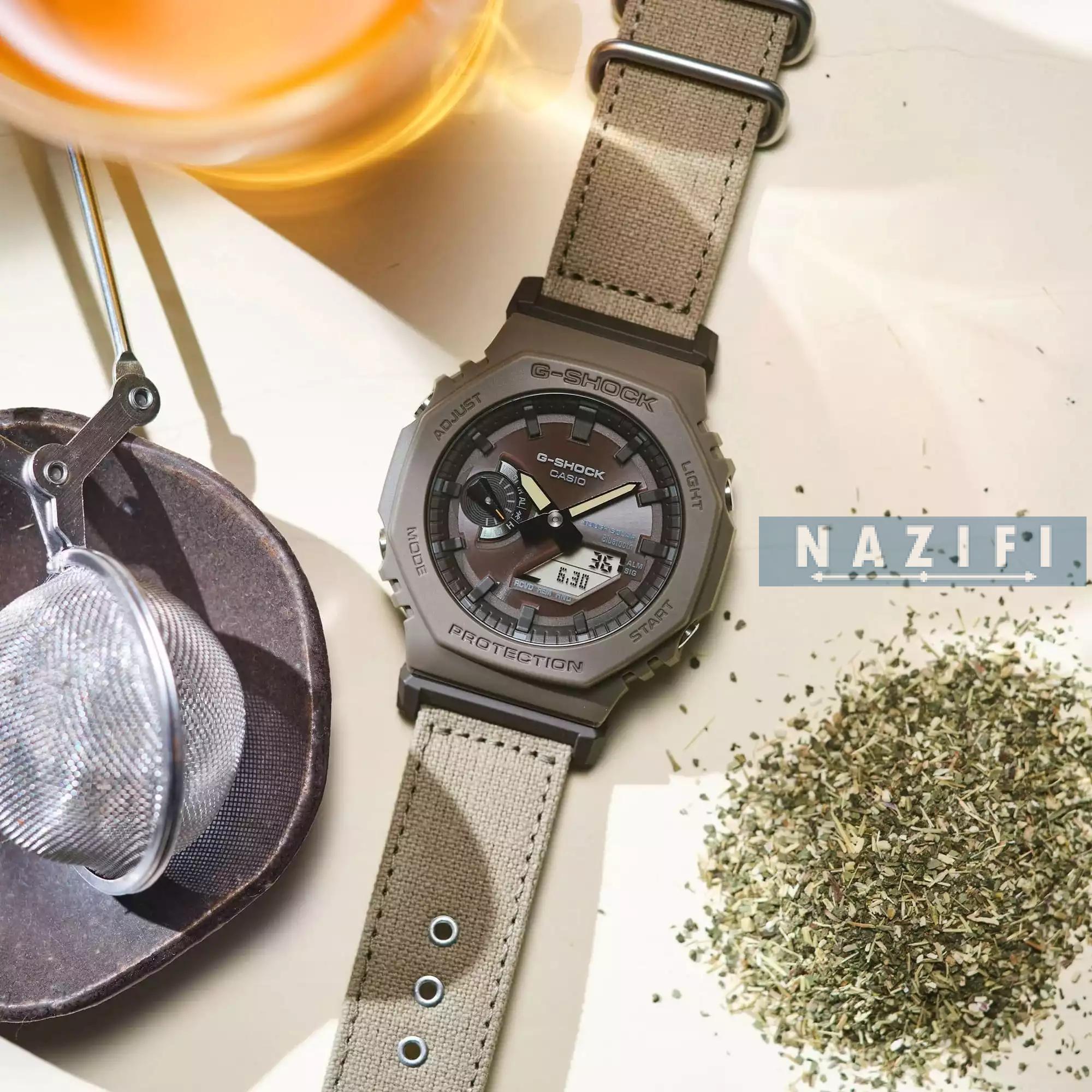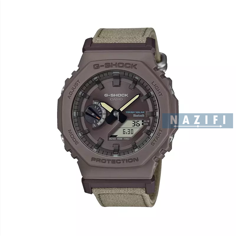 ویژگی ها مناسب برای : آقایان مقاومت در برابر آب تا : 200 متر منبع انرژی : باتری خورشیدی فرم قاب : چند ضلعی جنس قاب : کربن رنگ بدنه : قهوهای تیره جنس بند : پارچه یا برزنت نوع قفل : سگکی ساده