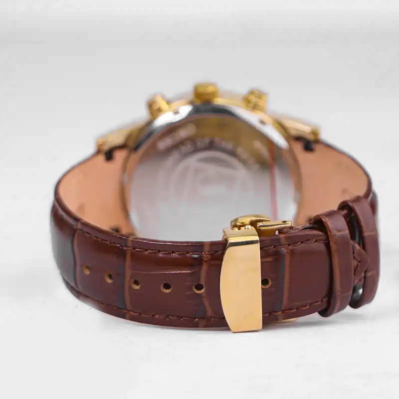 ساعت مچی مردانه سیکو چرم قهوه ای قاب طلایی کرنوگراف G9231/1 سه موتور فعال .