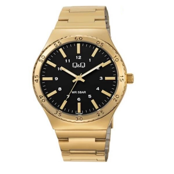 ساعت مچی عقربهای مردانه کیو اند کیو مدلQ70B-006PYساعتی از جنس استیل با نمایش عقربه های شب نما، دارای استاندارد ضد آب 50 متر ضد آب و ضد حساسیت برند کیو اند کیو با بسته بندی و جعبه اصلی شرکتی . طراحی این ساعت در کلاس اسپرت هست و برای استایل های روزانه و اسپرت کاملن مناسبه . دارای استاندارد ضد آب50 متر هست که برای شنای سطحی و کم عمق ، و استفاده هنگام استحمام (دوش گرفتن) و فعالیت های ورزشی مناسبه . رنگ طلایی استفاده شده برای این ساعت از نوع یونیزه هست که باعث شده در برابر خط و خش و رطوبت و تعریق دست مقاوم باشه و به هیچ وجه از آسیب نبینه .