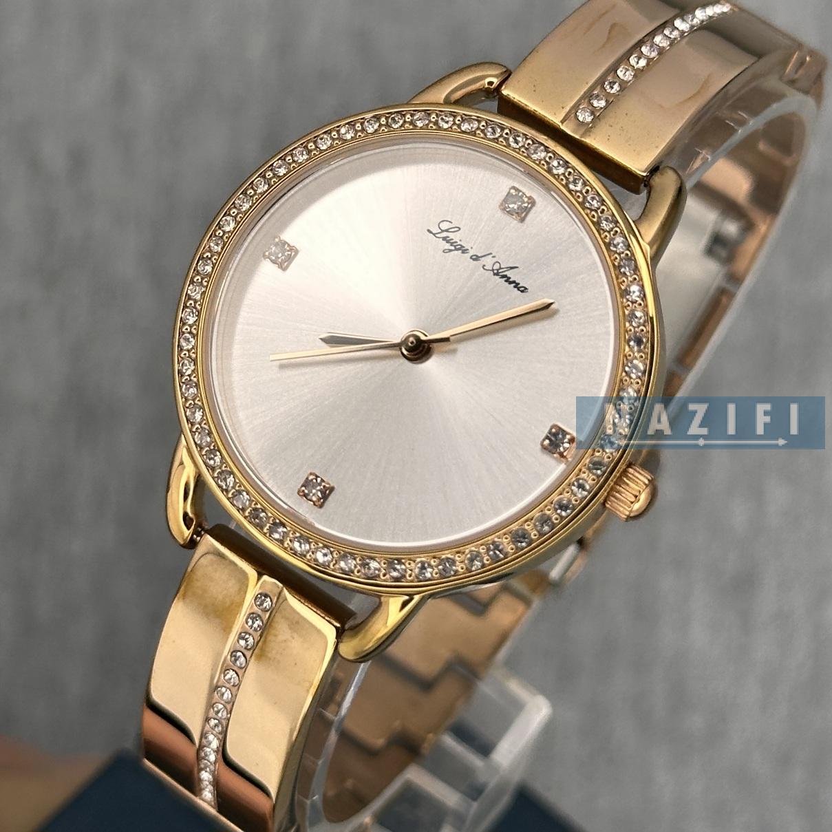 ساعت LDA زنانه: طراحی ظریف و مجلسی، با رنگبندی طلایی، نقرهای و رزگلد.