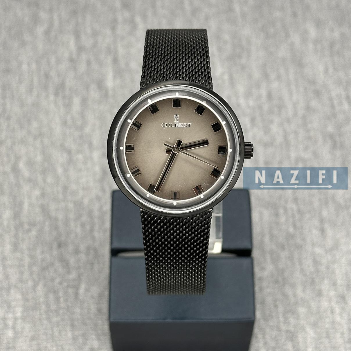 ساعت مچی زنانه کلبرت اورجینال استیل ریزبافت بند حصیری تمام مشکی مدل Colbert 0194L