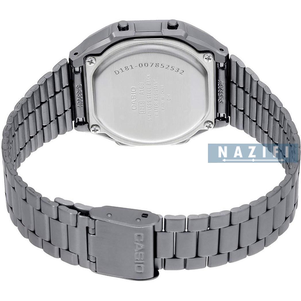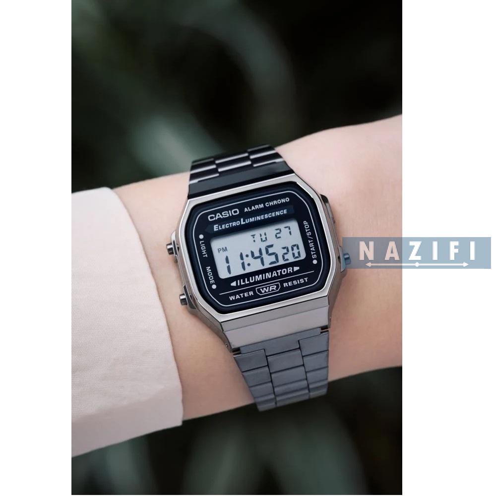 ساعت مچی دیجیتال کاسیو مدلA168WGG-1ADF ویژگی ها مناسب برای : آقایان و خانم ها مقاومت در برابر آب تا : صرفا کارهای روزمره منبع انرژی : باتری معمولی فرم قاب : مربع | مستطیل رنگ بدنه : مشکی / دودی تیره جنس بند : استیل نوع قفل : کلیپسی