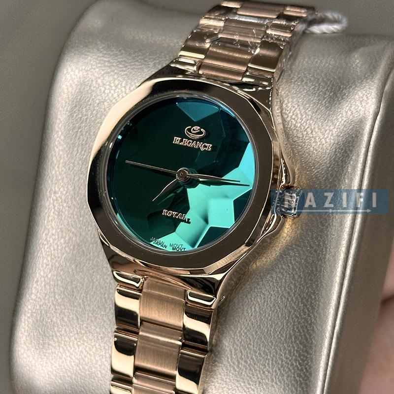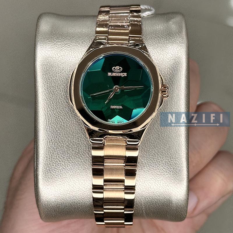 ساعت نظیفی ساعت زنانه خرید قسطی | ساعت زنانه الگانس استیل رزگلد صفحه سبز ER 2211/2