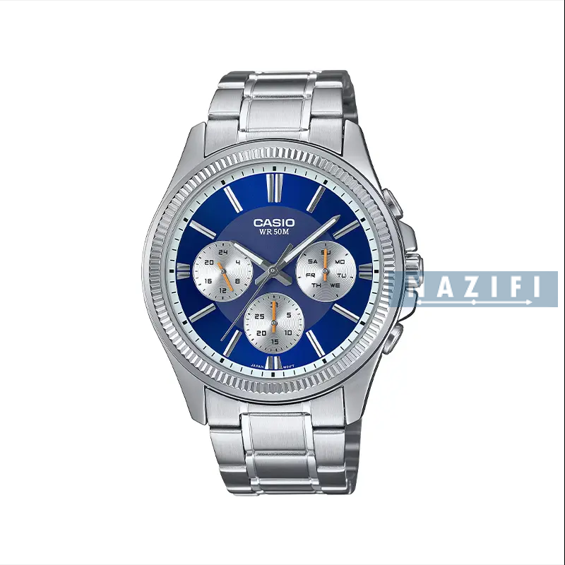 ساعت مچی مردانه کاسیو سه موتور فول تایم مدل MTP-1375D-2A1VDF مناسب برای : آقایان مقاومت در برابر آب تا : 50 متر منبع انرژی : باتری معمولی فرم قاب : گرد جنس قاب : استیل ضدزنگ رنگ بدنه : نقره ای جنس بند : استیل ضدزنگ نوع قفل : کلیپسی ضامندار گارانتی : 12 ماه
