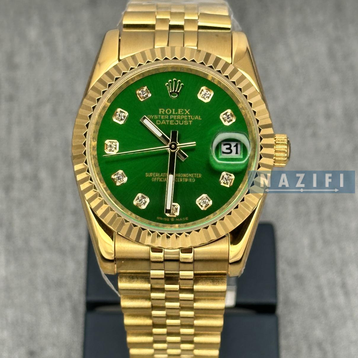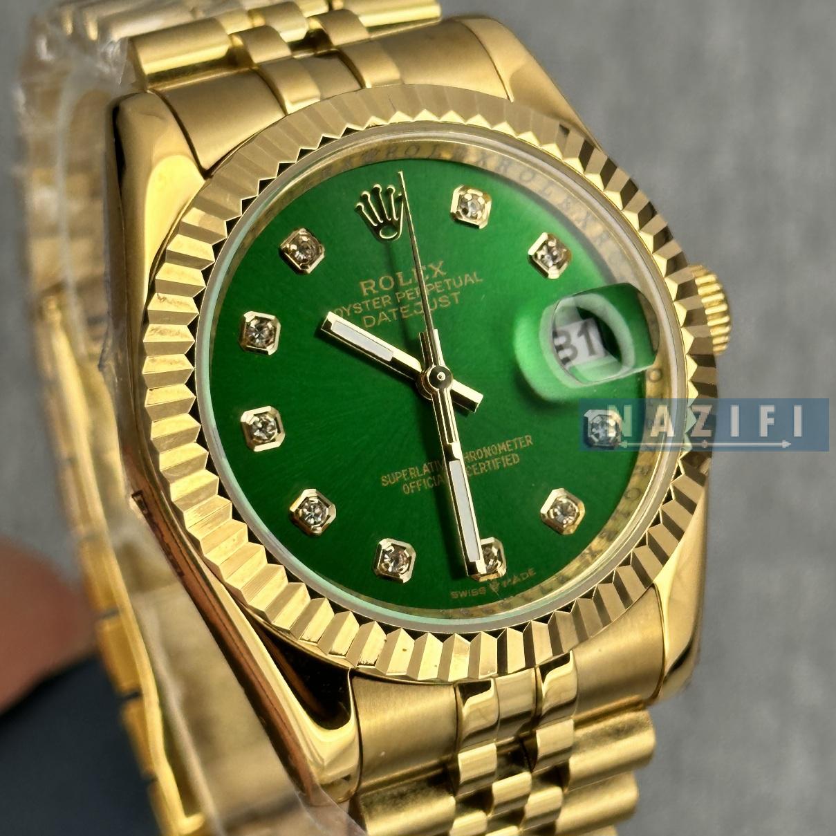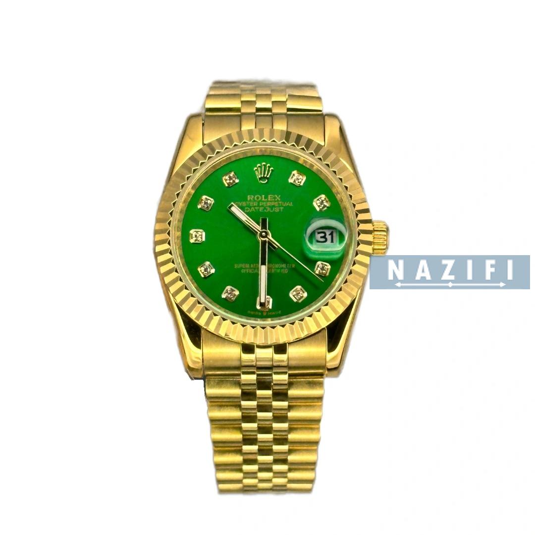 ساعت نظیفی ساعت مردانه ساعت رولکس مردانه طلایی صفحه سبز دیت جاست Date justGS4410
