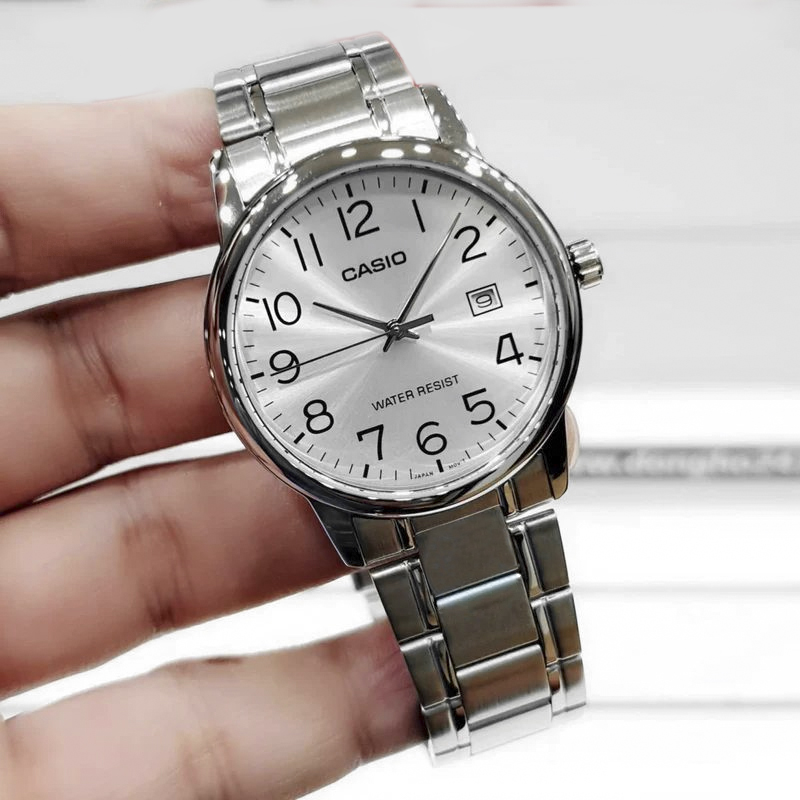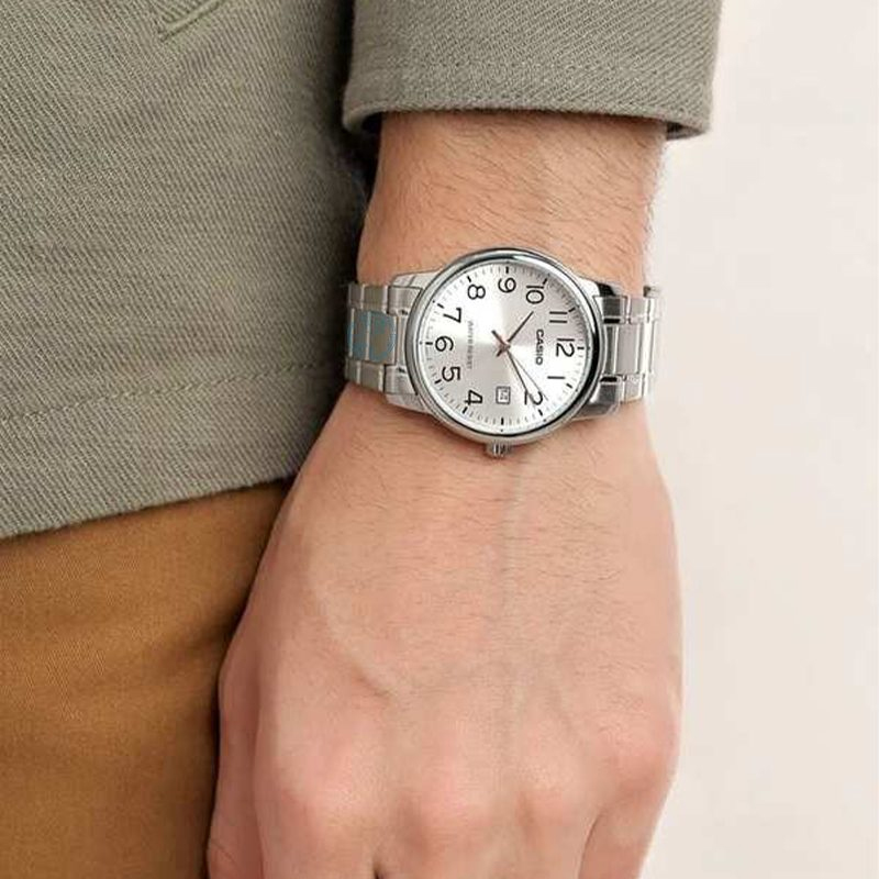 ساعت نظیفی ساعت مردانه ساعت عقربه ای مردانه کاسیو نقره ای صفحه سفید MTP-V002D-7BUDF