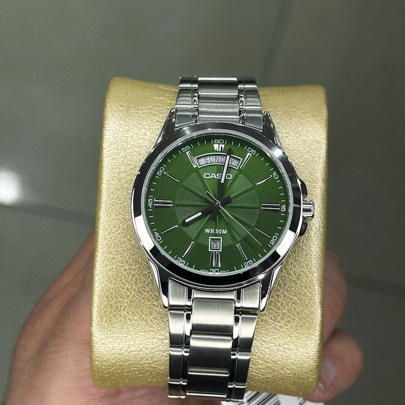 ساعت مچی مردانه کاسیو دو تاریخه کلاسیک ویژگی ها مناسب برای : آقایان مقاومت در برابر آب تا : 50 متر منبع انرژی : باتری معمولی فرم قاب : گرد جنس قاب : آبکاری یونی رنگ بدنه : نقره ای جنس بند : استیل ضدزنگ نوع قفل : کلیپسی گارانتی : 12 ماه پوزیترون