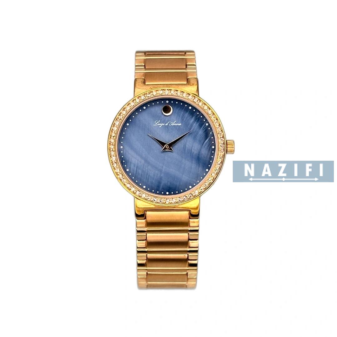 ساعت LDA زنانه: طراحی ظریف و مجلسی، با رنگبندی طلایی، نقرهای و رزگلد.
